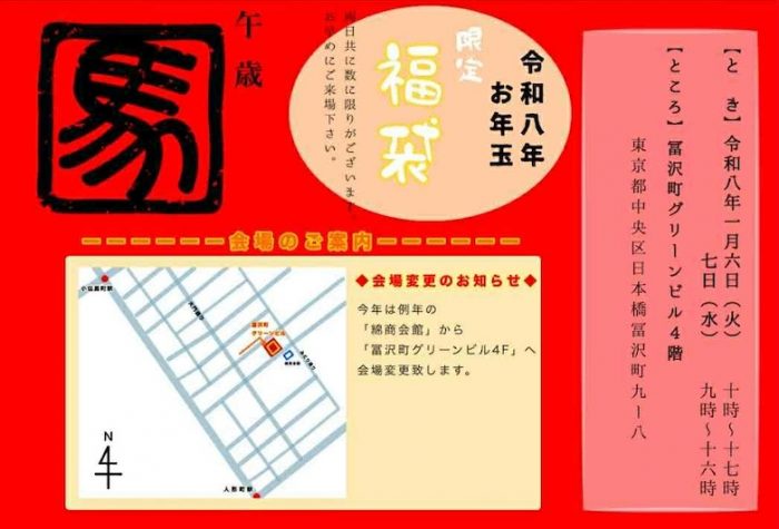 京都展に先駆けて開催される東京初市、お年玉(赤札の特価品)をそろえてお待ちしております。